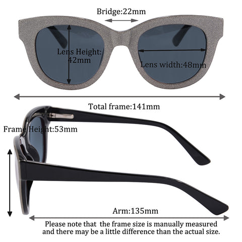 - The Dimension: frame(141*53mm) lens(48*42mm) bridge(22mm) arm(135mm)
